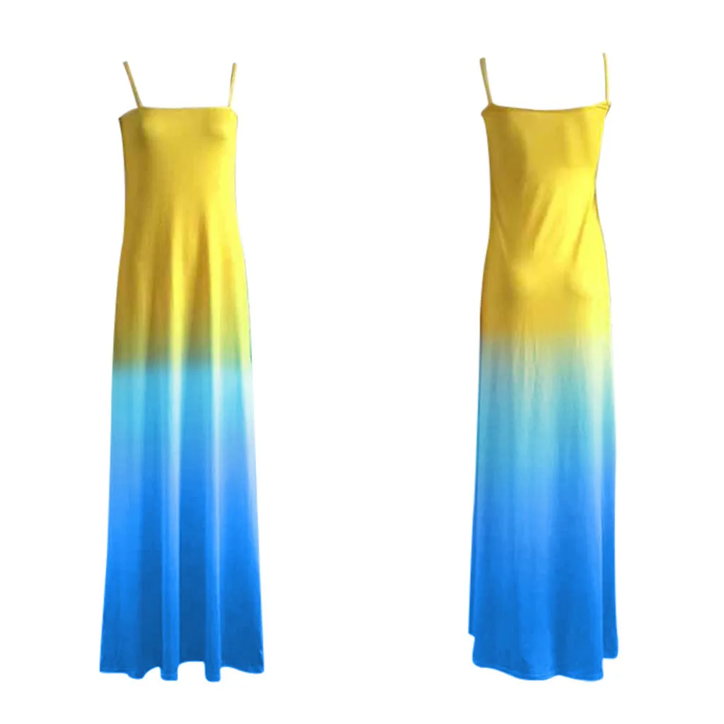 Летнее женское сексуальное платье на бретельках градиентного цвета, длинное платье