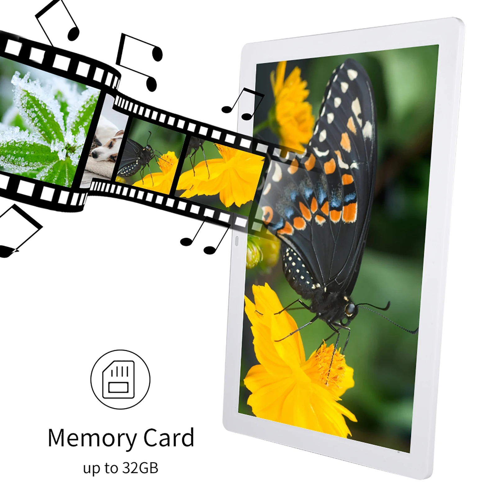 2. Максимальная поддержка карты памяти 32G, рекомендуется использовать карту памяти класса 6 и выше, чтобы избежать ситуации, когда цифровая фоторамка не может распознать карту памяти из-за низкой скорости записи.