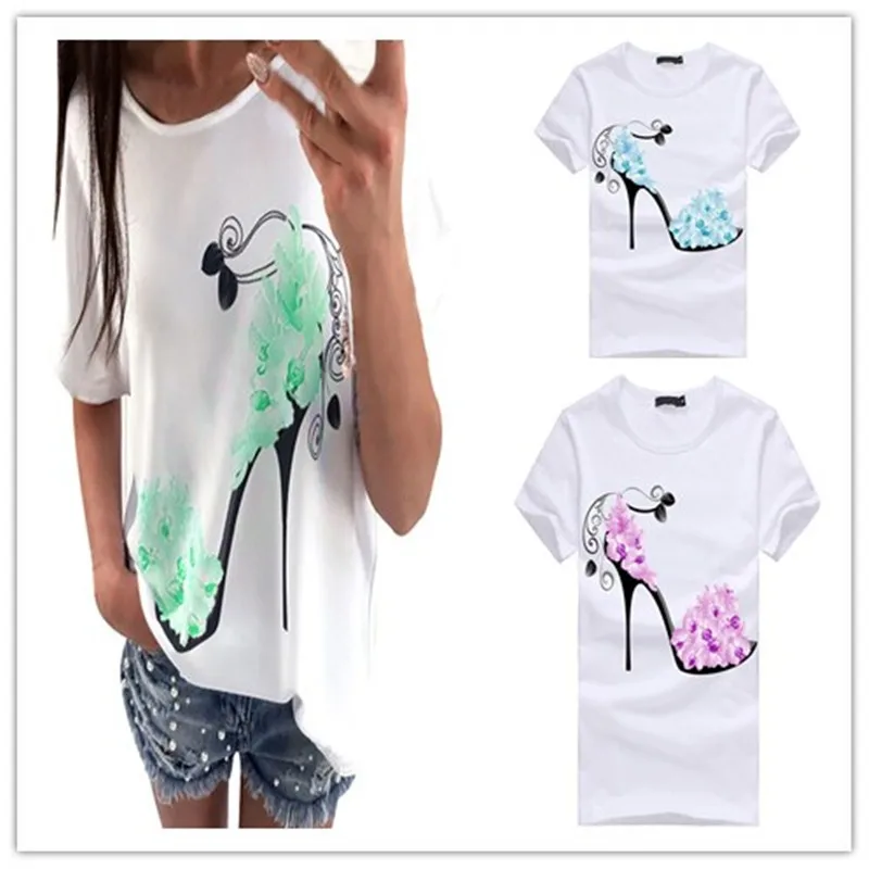Для женщин Топы с короткими рукавами на высоком каблуке с принтом; пляжная Повседневная Свободная блузка; Топ; футболка