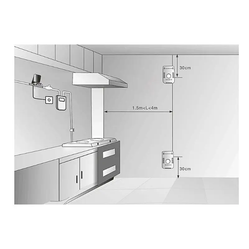 Монтируется на стене или шкафу, в радиусе 2 м от источника газа, около 30 см над землей для сжиженного нефтяного газа или около 30 см ниже потолка для угольного газа и природного газа-использование.