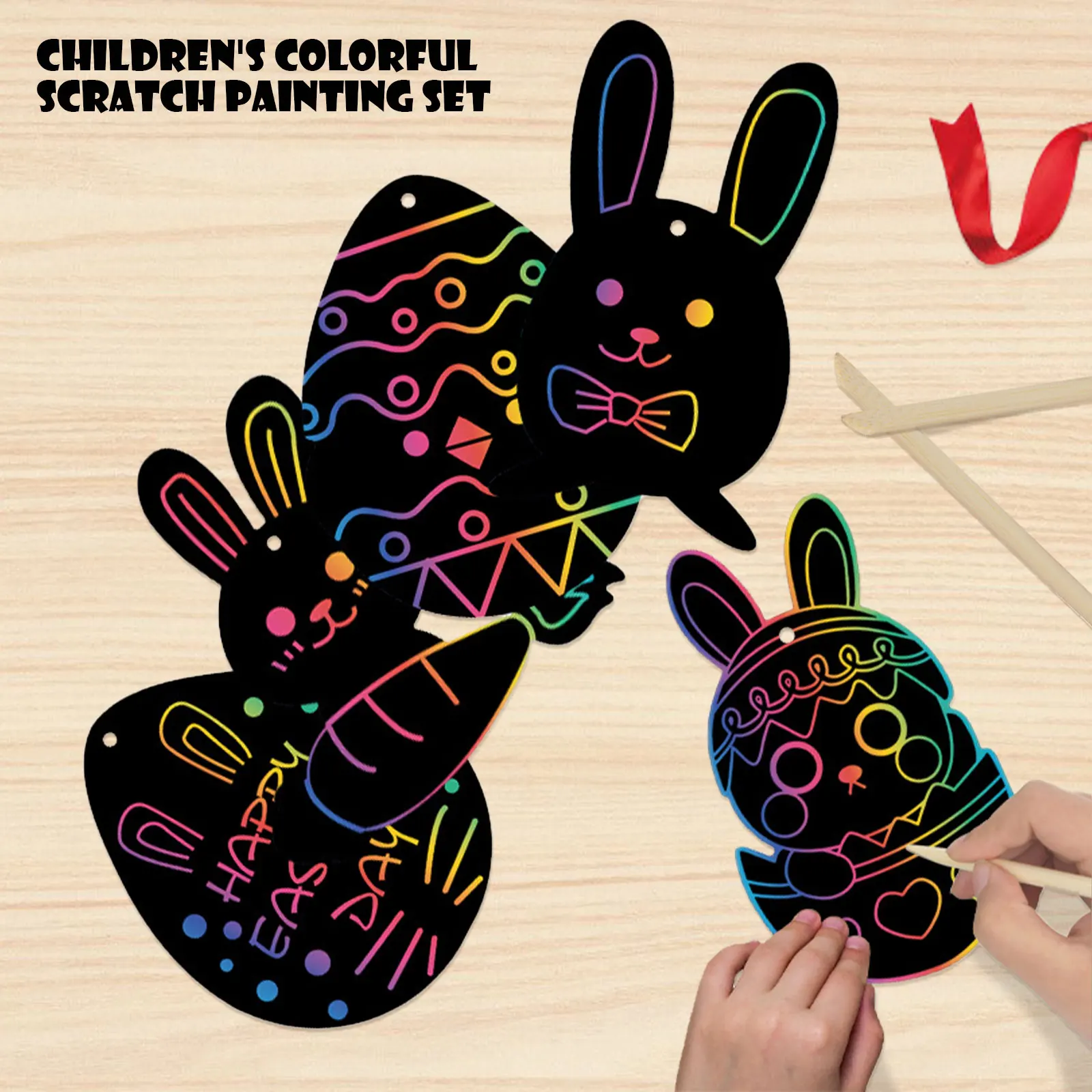 DIY пасхальное яйцо Радужное пасхальное яйцо кролик цыпленок царапины искусство украшения с лентами царапины ручки для детей Охота подарок ВечерниеUSD 2,07/Шт.