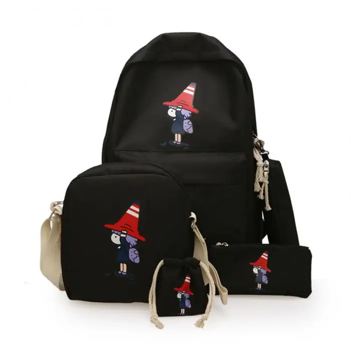 Женский холщовый рюкзак с принтом, повседневный рюкзак для подростков, 4 шт./компл., 2019