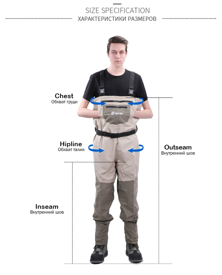 Быстросливная дышащая рыболовная нагрудная палочка с неопреновой стоковой стопкой, которая сохраняет Вейдер сверхлегким и конвертируемым для рыбалки, походов и охотничьих видов спорта.