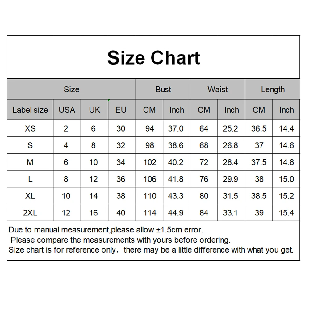 [Наш Размер XS] Обхват груди: 94 см/37,01 дюйма, обхват талии: 64 см/25,20 дюйма, длина: 36,5 см/14,4 дюйма (прибл.)