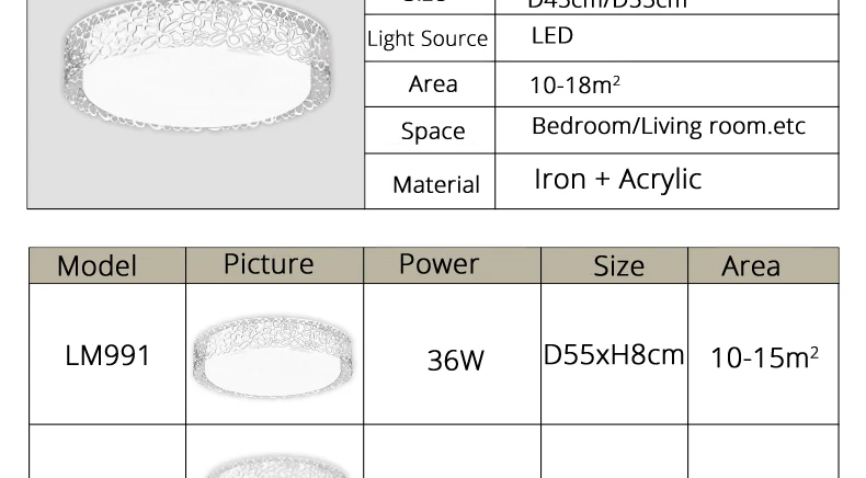 Материал: акрил + железо Размер: D45xH8cm 24 w площадь: 10-15 m2 D55xH8cm 36 Вт Площадь: 12-18m2 Цветовая температура: теплый свет, белый свет, Яркость затемнения Способ установки: Поверхностный монтаж Гарантийный срок: 2 года Обратите внимание Теплый свет: без пульта дистанционного управления, без затемнения Белый свет: без пульта дистанционного управления, без затемнения Яркость затемнения: с пультом дистанционного управления (без аккумулятора), это означает, что свет может контролировать цвет и яркость лампы