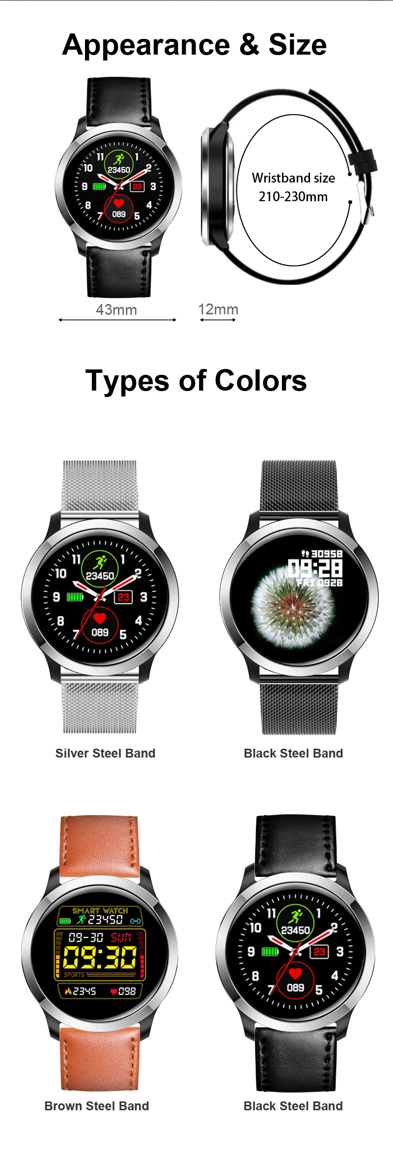 Размер экрана: 1,3 Цвет экран 240*240 Емкость аккумулятора: 200 мАч Совместимая система: Android 4,4 и выше, iOS 8,2 и выше Основная особенность: ремешок для часов из термополиуретана с защитой окружающей среды, наклейка на руку не будет носить. Функция двигателя: Шаг/калории/расстояние, мульти режим движения. Кожа часы цепь мониторинг сердечного ритма, мониторинг артериального давления и другие функции здоровья Wearbale Hardward + SmartA pp + Сервис больших данных Носить эти умные часы в любое время. Управление приложением, отображение, запись данных. Данные будут синхронизироваться с приложением и клипсами. Эти Смарт-часы могут следить за состоянием здоровья нашего тела. Это может найти и обнаружить наши данные о состоянии здоровья, отображать состояние риска и результаты оценки Длительный срок службы батареи, 6-10 дней использования Другие функции: шаг, калории, расстояние, монитор сна, спорт, напоминание о звонке, напоминание о тревоге, поднимите руку, часы, зажигалка, соц. Поделиться (wechat, QQ, Facebook, Twitter, Встряхните руку, чтобы взять фонто Язык: язык прошивки: китайский, традиционный китайский, английский, немецкий, корейский, испанский, Японский, французский, русский, арабский, украинский Язык приложения: китайский, традиционный китайский, английский, корейский, немецкий, испанский, японский, французский, итальянский, русский, португальский, арабский, украинский