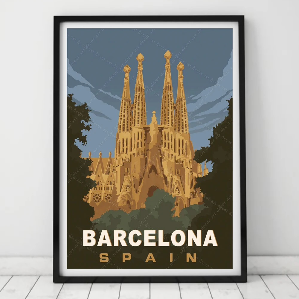 Испания, Барселона, Sagrada Familia, винтажный дорожный постер, холст, картина, настенная живопись, крафт-постеры с покрытием, настенные наклейки, домашний декор, подарок