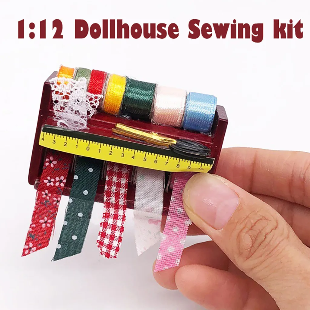 Dollhouse Miniature Needlework Kit Sewing Supply Needle Box Tools Accessory 1:12