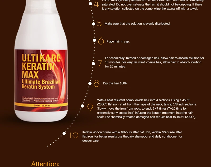Метод 1: Используйте разное содержание кератина формалина для различных вьющихся волос и поврежденных волос.