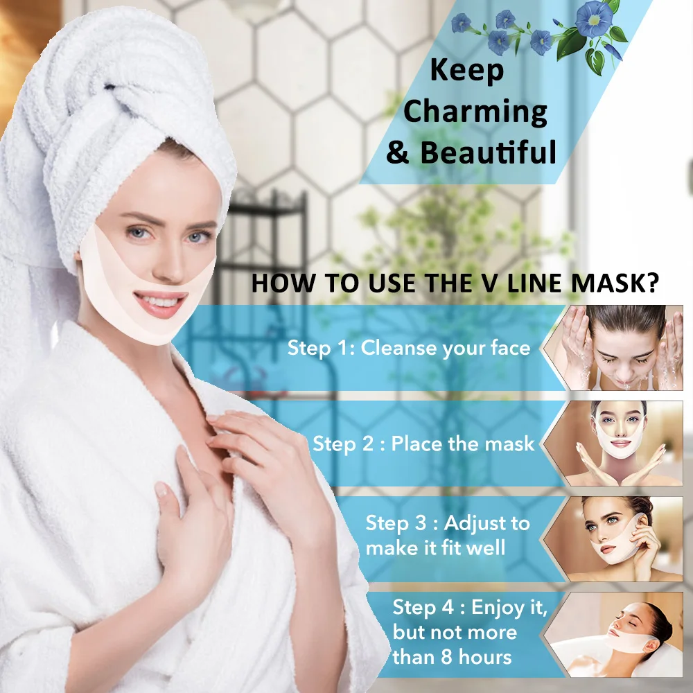 Эластичная тонкая маска для лица сделает ваше лицо более красивым и здоровым. Подходит для всех типов кожи. V-образная поверхность и подтяжка подбородка. Специально разработанная Область рта. Основные ингредиенты: Коллаген, эфирное масло, BI-SKIM высокоэффективный лифтинг-фактор (не только эффект V лица, но и выцветание линий), эластем (восстанавливает эластичность кожи, укрепляет кожу)