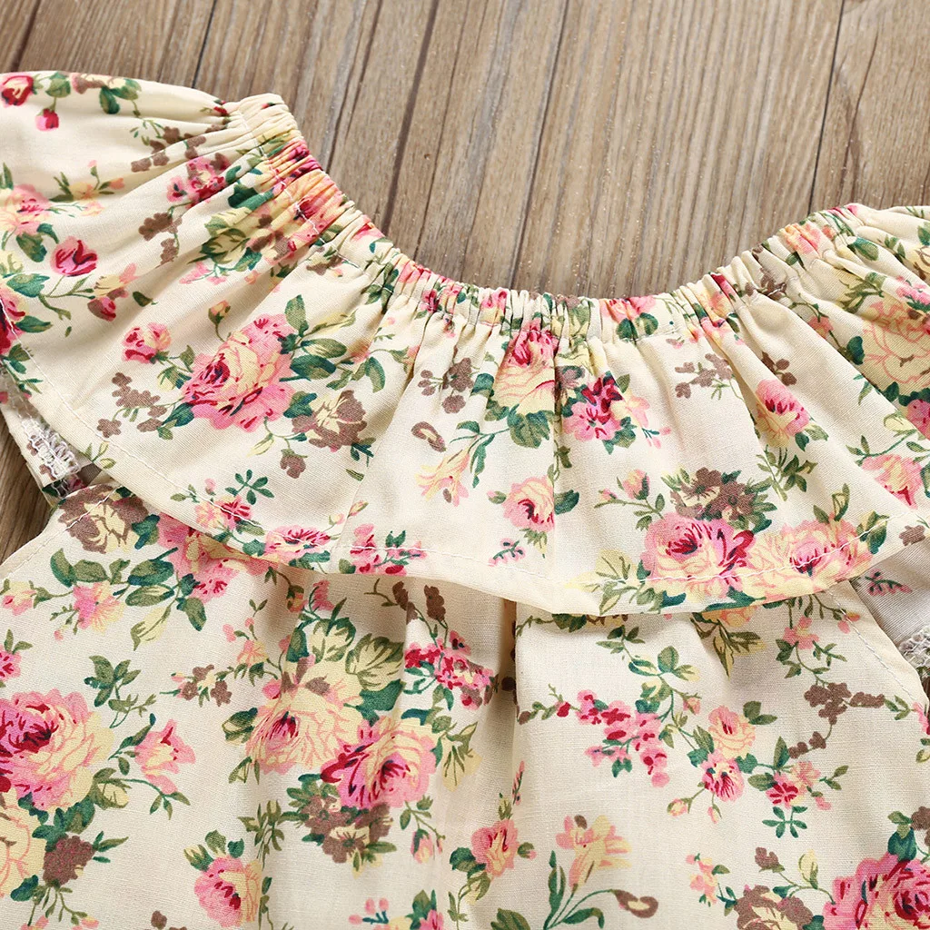 MUQGEW/Одежда для маленьких девочек; Сезон лето; Коллекция 2019 года; Повседневная футболка с цветочным принтом и открытыми плечами для маленьких девочек + шорты; Комплект одежды из 2 предметов