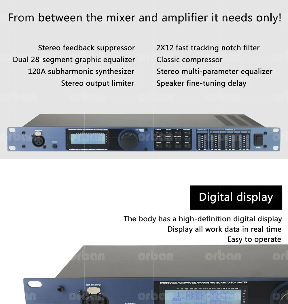 PA: Особенности: В аудиосистеме периферийное оборудование и боковые части являются сложными и имеют широкий спектр оборудования, включая компрессоры для создания сильных звуков, усилителей, эквалайзеров качества звука, фильтруйте или улучшайте эквалайзер определенных параметров для сигнала, Отзывы подавителя для СВИСТЯЩЕГО звука, ограничитель для защиты акустического блока, Устройство задержки для регулировки разницы во времени рога, эквалайзер для компенсации дефекта частоты в комнате... Так много оборудования, инженерный бизнес начинает кружиться, не говоря уже о среднем потребителе. Менее опытные пользователи, видя звезды, такие как звезды в небе, кнопки управления, неиссякаемые соединительные линии, действительно не могут начать, это пугает. Инженеры по проектированию DriveRackTMPA понимают потребности пользователя и проектируют периферийные устройства нового поколения, которые сочетают все эти функции. С этого момента, есть только одно устройство от миксера к усилителю, контроллер, который включает в себя все основные периферийные функции. Не только в том случае, DriveRackTM PA разработан, чтобы заботиться о удобстве контрактора и включает в себя технические параметры большинства динамиков JBL и усилителей Crowm. Инженер должен только следовать инструкциям мастера настройки, чтобы последовательно выбирать и вводить модель и рабочий статус устройства. Остальная часть утомительной работы выполняется автоматически DriveRackTMPA. Подключается к стандартному тестовому микрофону RTA-M и функции автоматического баланса эквалайзера, DriveRackTMPA автоматически регулирует баланс комнаты, чтобы компенсировать Частотные дефекты шума, вызванные плохим встроенным звуком. Отзывы по быстрому отслеживанию в сочетании с точной защитой от выхода являются благом для пользователей и инженеров, обеспечивая стабильную работу системы. ● Стерео отзывы suppressor 2 × 12 Группа быстрого отслеживания notch filter ● Двойной 28 в поп упаковке, графический эквалайзер ● Классический dbx компрессор ● 120A субгармонических синтезатор ● 2 × 3, 2 × 4, 2 × 5, 2 × 6 выбор комбинации частот ● Стерео мультипараметрический эквалайзер ● Стереовыход ограничитель ● Задержка тонкой настройки динамика ● Розовый шум генератор ● Автоматическое эквалайзерное автоматическое выравнивание комнаты компенсация ● Установите функцию мастера настройки динамика JBL и усилителя Crown ● 25 заводских пресетов/25 пользовательских настроек памяти программы ● 2 набора входов, 6 комплектов выходов ● RTA-M микрофонный вход в режиме реального времени устанавливается на панели с фантомным источником питания ● 24-битный аналого-цифрового преобразователя с предоставляет широкий динамический диапазон больше, чем 110dB ● Dbx патент Тип IVTMA/D конверсии ● Графический ЖК-дисплей дисплей Технические параметры: Аналоговый вход: Количество входов: (1 комплект) RTA вход микрофона (2 группы) линейный вход Категория: Электронный баланс/RF фильтр, XLR Female Импеданс: >40kΩ Уровень входного сигнала: + 20dBu Коэффициент отклонения в обычном режиме: >45 дБ RTA микрофон фантомный источник питания: + 15VDC RTA микрофон эквивалентный входной шум: <-110dBu, 22 Гц, -22 кГц, 150Ω Аналоговый выход: Количество выходов: (6 групп) линейный выход Категория: Электронный баланс/RF фильтр, XLR Импеданс: 120Ω Выходной уровень: + 20dBu Характеристики A/D: Категория: dbx Тип IV преобразован