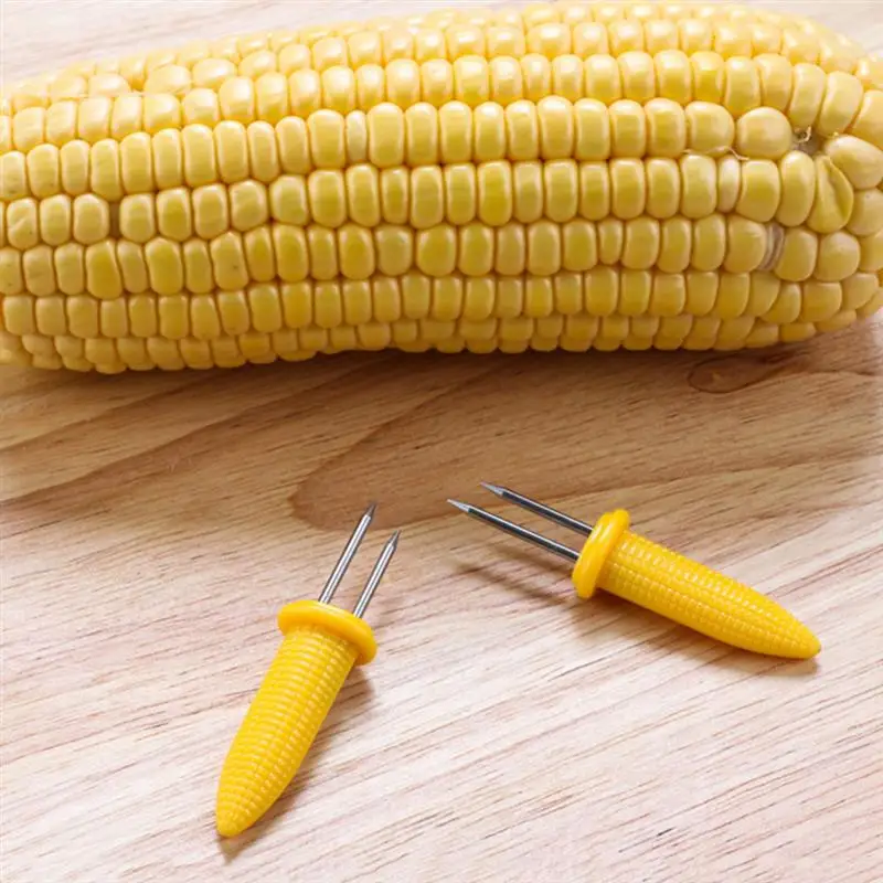 10 шт из нержавеющей стали держатели кукурузы кукуруза в початках шампуры для фруктов вилки открытый инструмент для барбекю (желтый)