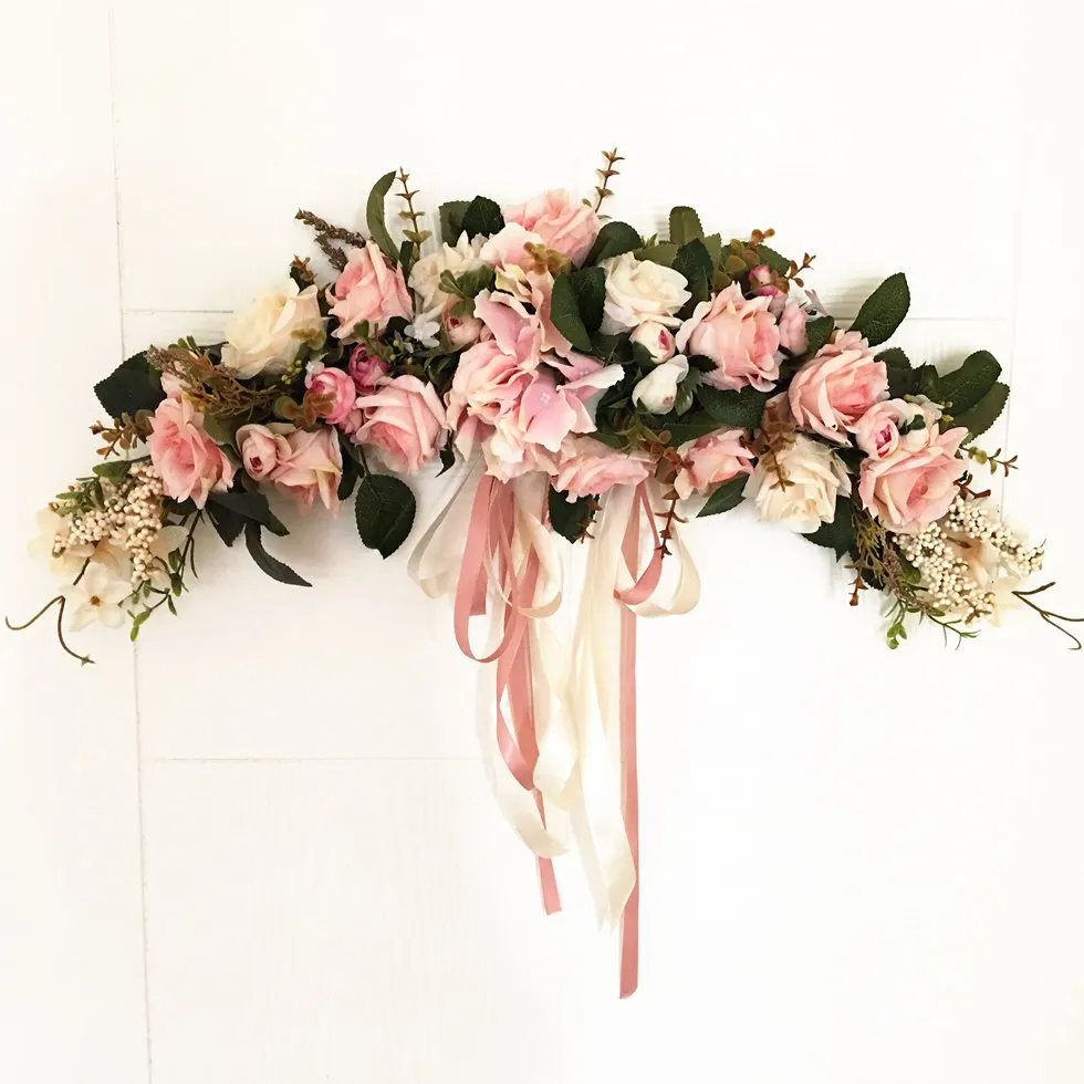 Искусственная Цветочная Гирлянда Венок в форме сердца из ротанга Шелковый цветок пион цветочное растение свадебное украшение для дома Настенный декор для двери подарок