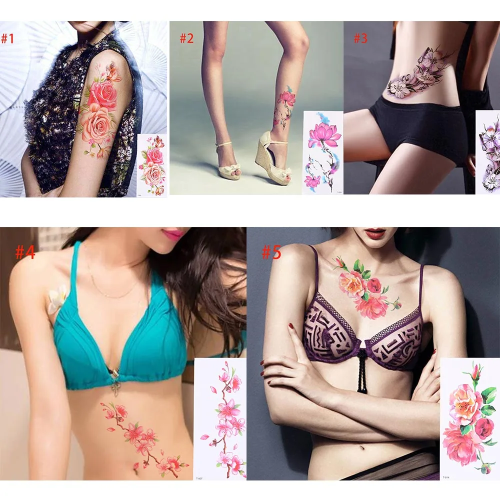 1 шт., модные Съемные женские 3D наклейки с цветами, водонепроницаемые временные тату наклейки, красота, боди-арт, легко носить, легко чистить