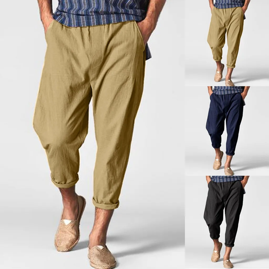 Мужские летние Новые Стильные Простые и модные брюки из чистого хлопка и льна