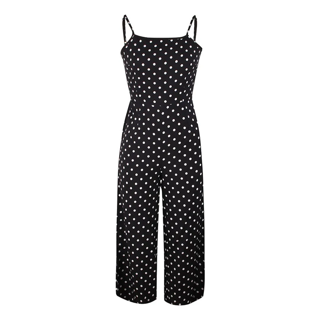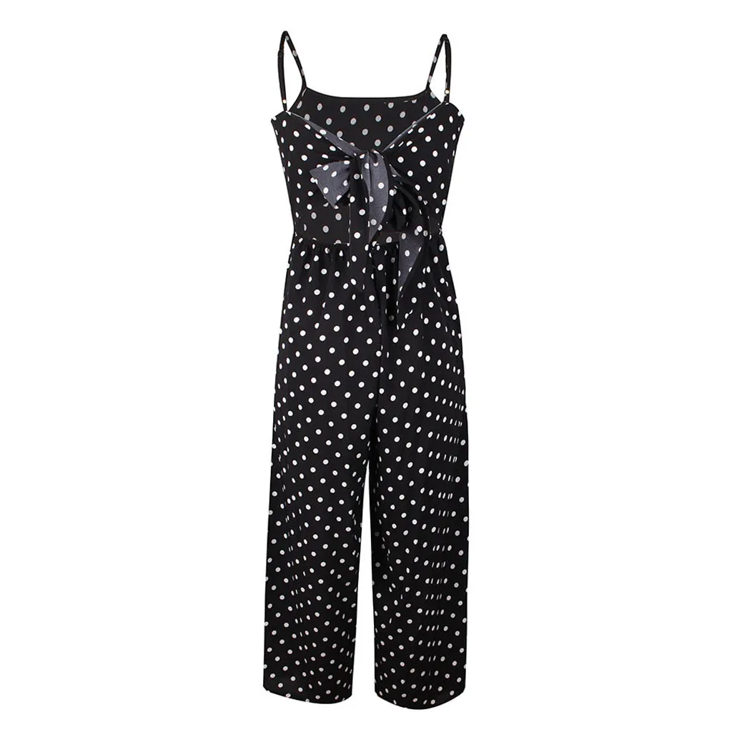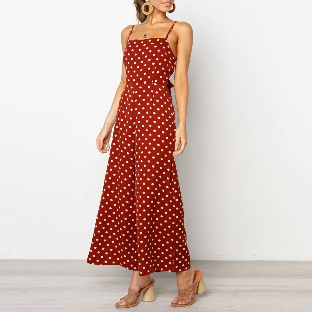 Женский праздничный комбинезон в горошек с широкими штанинами и открытой спиной