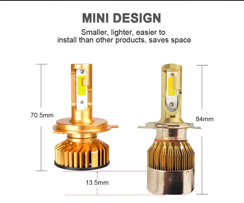 1. Размер: Мини-размер, подходит для более чем 99% моделей автомобилей 2. Луч: Использование СВЕТОДИОДНЫХ чипов COB и специальный дизайн обеспечивают лучший светильник, форму в линии и точечный светильник 3. Высокие Люмены: Используется высококачественная светодиодная микросхема (чипы COB), высокая светоотдача. 36 Вт и 4000лм для каждой лампы, всего 72 Вт и 8лм для каждой пары, в 5 раз ярче, чем оригинальные галогенные лампы Чипы COB, высокое качество и долгий срок службы; Прочная фиксация заклепок (Многие другие чипы автомобильных фар фиксируются винтами; Их легко отвалить) 4. Материал: Металлический материал, более роскошный и длительный срок службы 5. Разъем зажима: Прочный металлический зажим, вращающийся на 360 градусов для регулировки луча 6. Адаптер: Внешний адаптер для более длительного срока службы Plug-N-Play (Canbus-ready, EMC-ready): Canbus-ready, без ошибок и проблем с вспышкой (для 95% транспортного средства) Размер идеально подходит для ваших фар и подключается непосредственно к розеткам. EMC-ready, не нужно беспокоиться о радиопомехах 0,1 секундный 100% светильник, никаких задержек с запуском 7. Простая установка: Все-в-одном Алюминиевый материал и дизайн позволяют легко установить. Plug-and-Play Прямая замена через 20 минут. Нет необходимости в дополнительной операции и нет необходимости разблокировать кнопку. Для некоторых автомобилей, пришлось сделать небольшую регулировку адаптера, чтобы получить правильный светильник 8. Вентилятор: Система охлаждения с мощным турбо-вентилятором с 12 000 об/мин, быстрое охлаждение, сохраняет супер долгое время освещения. 9. Водонепроницаемость: Хорошо запечатанный, высокая степень водонепроницаемости, IP67
