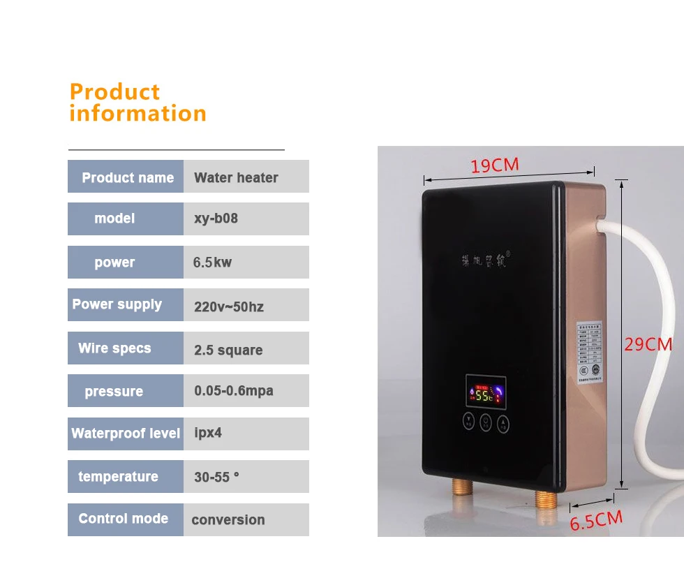 220 В мгновенный Электрический водонагреватель Кухня душ интеллигентая (ый) Частота постоянного Температура водонагреватель небольшая печь трамвай 6500W