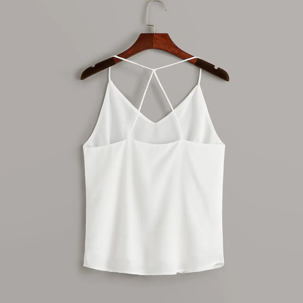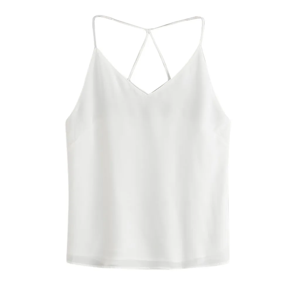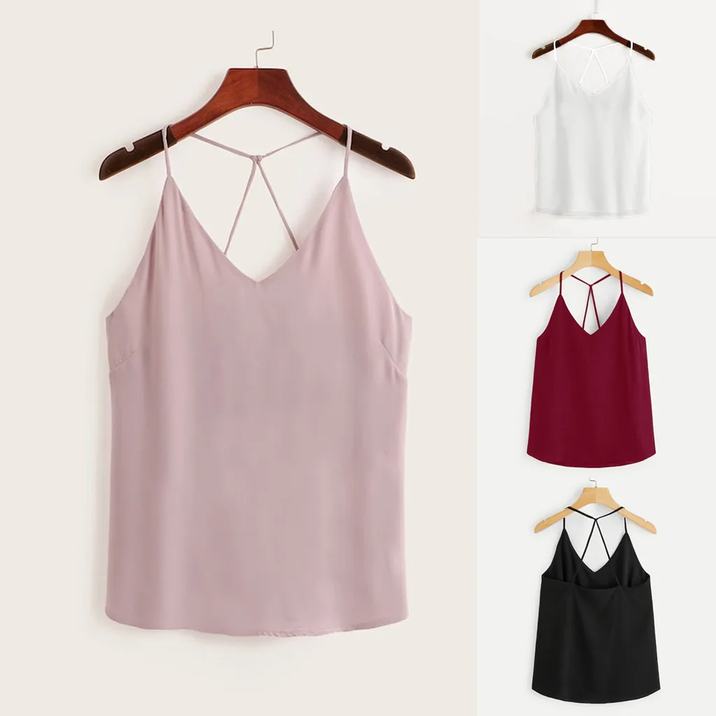Женская Повседневная шифоновая однотонная блузка без рукавов на бретельках