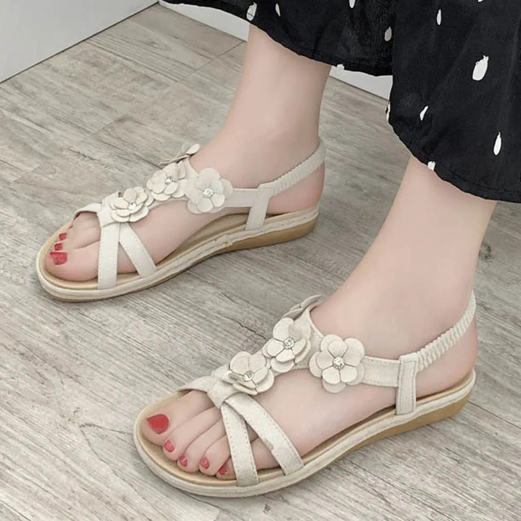 SAGACE/женские сандалии; модные сандалии на плоской подошве; повседневные пляжные сандалии со стразами; эластичные сандалии с открытым носком и цветочным принтом
