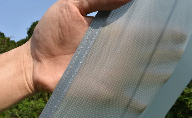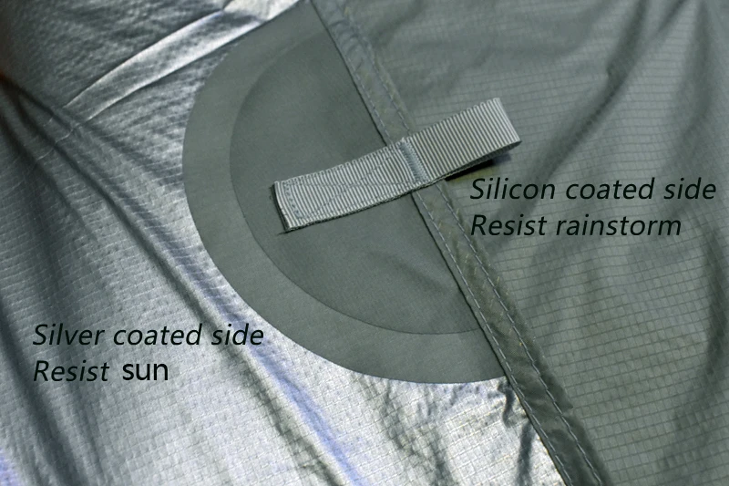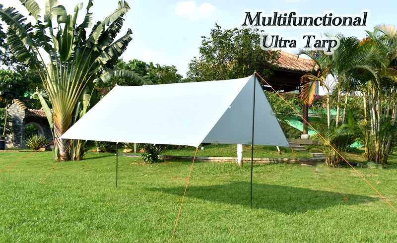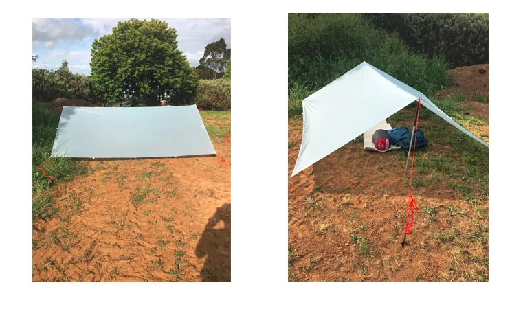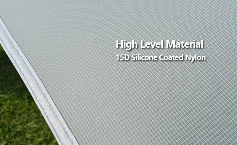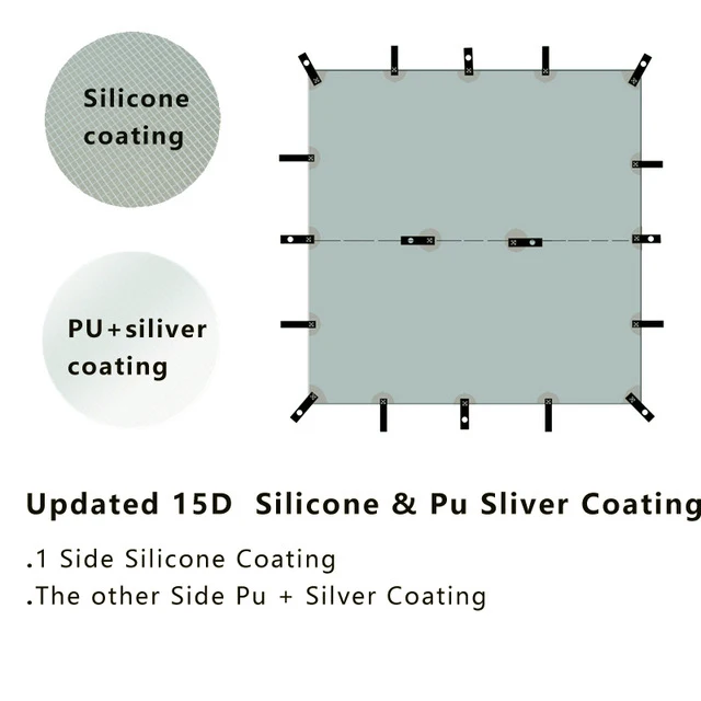 Материал (Обновлено) :15D силиконовый нейлон + серебряное покрытие и ПУ Размер: около 3x3m / 3x4m / 3x5m Вес: 3x3 м около 660 г (брезент 530 г, веревки 40 г, колышки около 90 г); 3x4 м около 820 г (брезент 690 г, веревки 40 г, колышки около 90 г); 3x5 м около 980 г (брезент 850 г, веревки 40 г, колышки около 90 г) Цвет: серый Висячие точки: 18 Размер упаковки: 26x13 см/28x13 см/30x14 см Список: 1 брезент, 6 канатов Внимание: Не включает опорные полюсы. Материал в настоящее время обновлен, все еще 15D силиконовый нейлон, но 1 сторона силиконового покрытия, и другая сторона PU + серебряное покрытие (серебряное покрытие является обновленной частью). Характеристики: ультра-светильник, портативная, силиконовая сторона покрытия может противостоять дождевой шторме, а Серебряная сторона покрытия может противостоять солнцу.