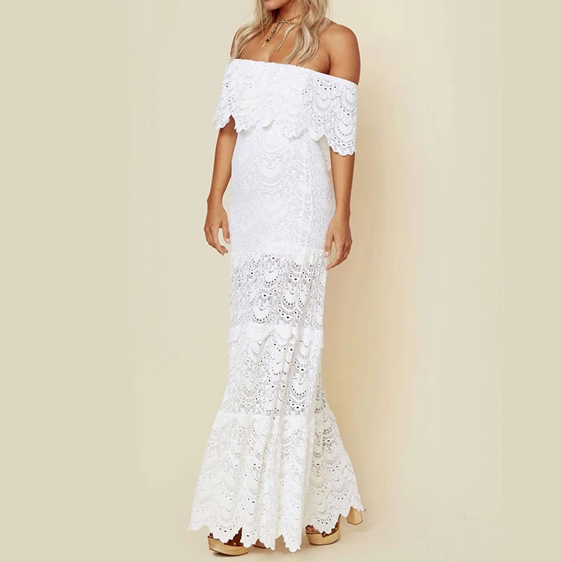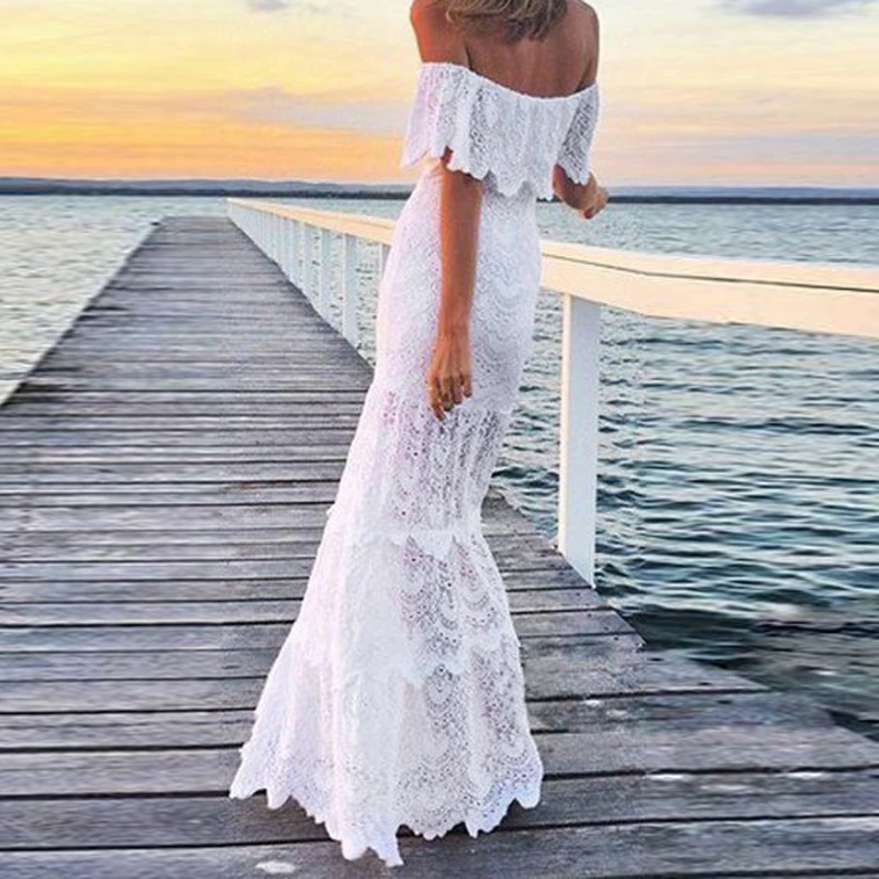 * Описание товара: 2019 Весна новое женское сексуальное кружевное пляжное платье с открытыми плечами длинное белое платье