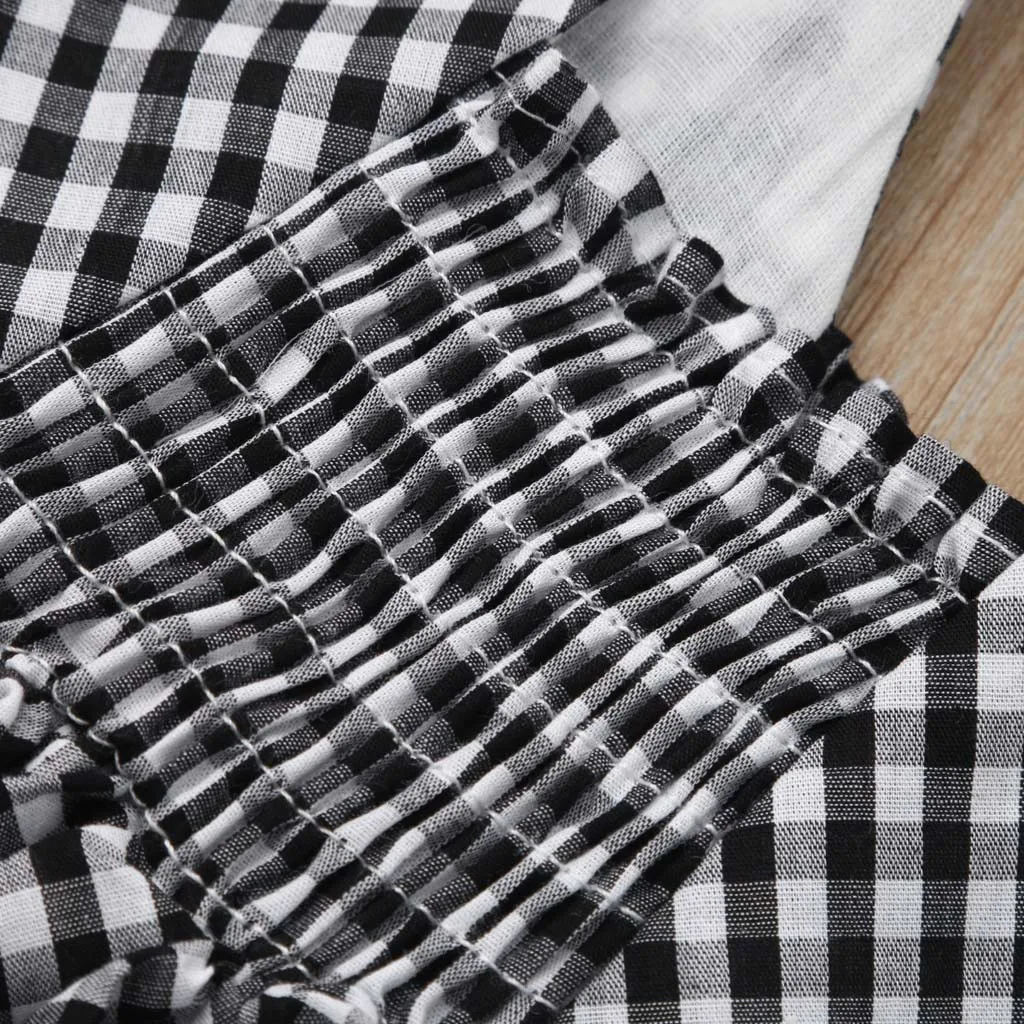 Клетчатое платье с открытыми плечами для маленьких девочек; платья с оборками и бантом; одежда