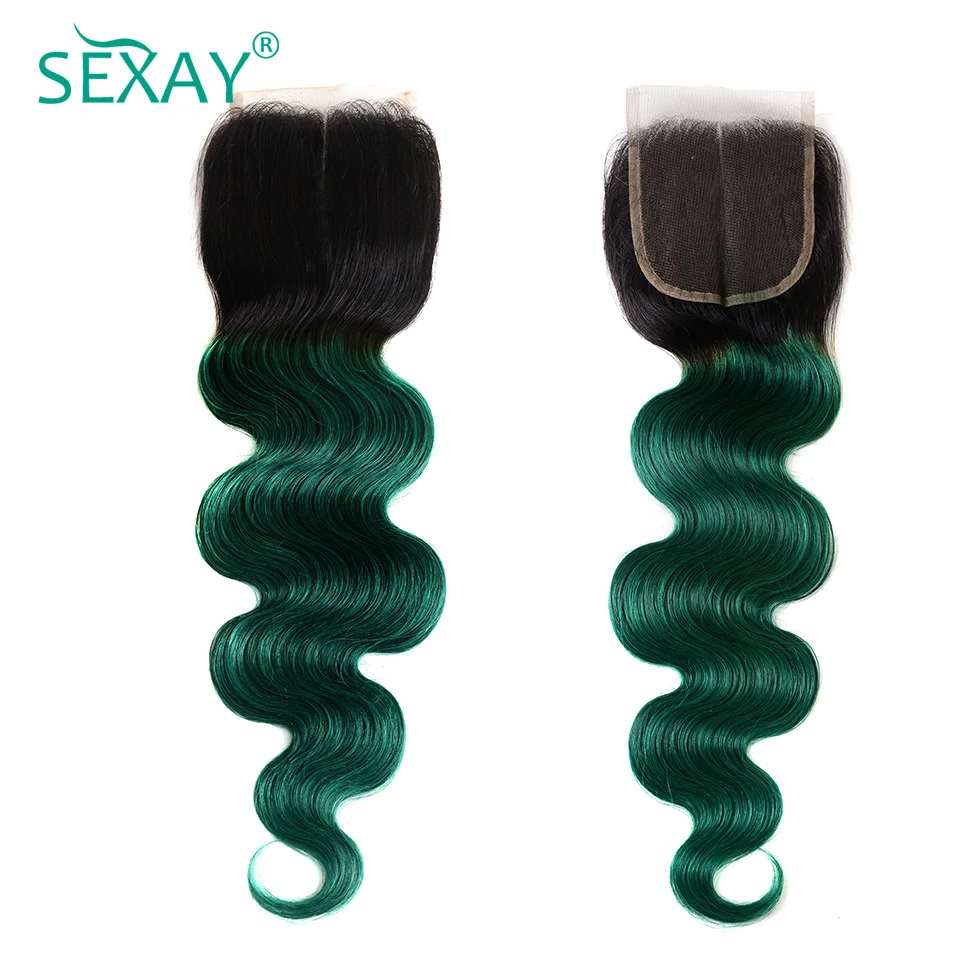 Sexay бирюзовые кружевные накладки с объемной волной для волос ребенка 10A бразильские человеческие волосы Омбре 1B зеленый бирюзовый предварительно выщипанный 4x4 кружева закрытие