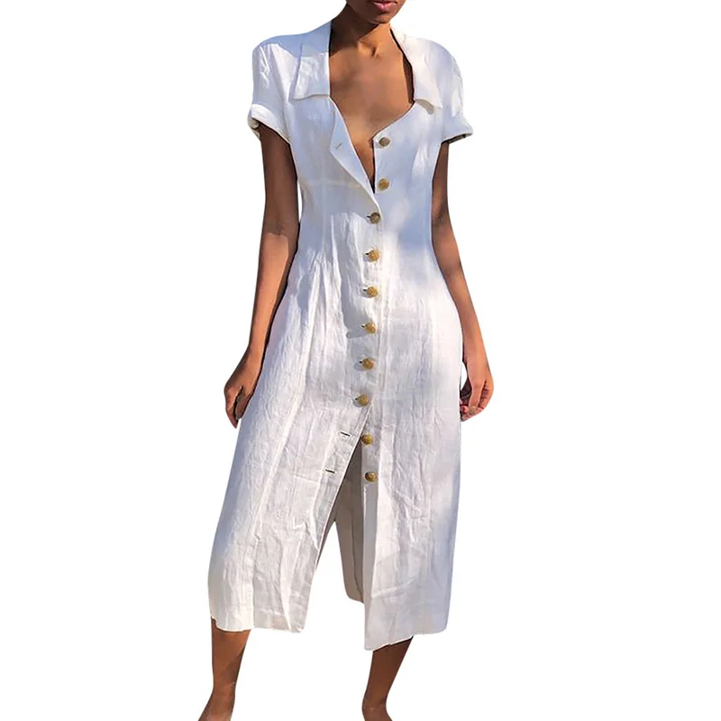 * Описание товара: Лето; пляж; праздник; Лен; короткий рукав; пуговицы; разрез; отворот