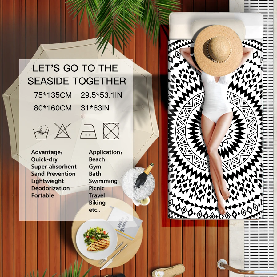 Размер: 35*75 см, 80*160 см, 90*180 см (1 см = 0,393 '') Упаковка: opp мешок + черный сетчатый мешок ★Свернутый маленький, подходит для вашей сумки: когда вы путешествуете полотенце из микрофибры, не волнуйтесь, если ваш рюкзак слишком тяжелый. Мягкий на ощупь. Идеально подходит для занятий спортом, плавания, кемпинга, занятий йогой или просто сушки лица. Положите красивое складное полотенце в этот удобный пакет. ★Одностороннее полотенце из микрофибры с принтом прочное и гладкое, подходит для тела. Это отличный компаньон, когда вы занимаетесь йогой или пилатесом. Это пляжный аксессуар для взрослых, отдых на открытом воздухе и Пешие прогулки, которые экономят вам много места. ★Нет песка Ультра Абсорбент, быстрая сушка: он отличается от хлопка, но более гладкий и тоньше, чем хлопок. Быстрая Сушка-в 3 раза быстрее, чем хлопок. Обладает особыми свойствами-быстрая сушка, супер абсорбирующий, антибактериальный, песочный и легкий. Не используйте влажные салфетки, чтобы положить их в сумку. Отличный рюкзак и полотенца. У нас есть разные цвета на выбор, будь то полосатые или розовые пляжные полотенца. Не нужно жертвовать модным комфортом! ★Эластичная веревка удобна для вас, и дверь ванной комнаты-хороший выбор.