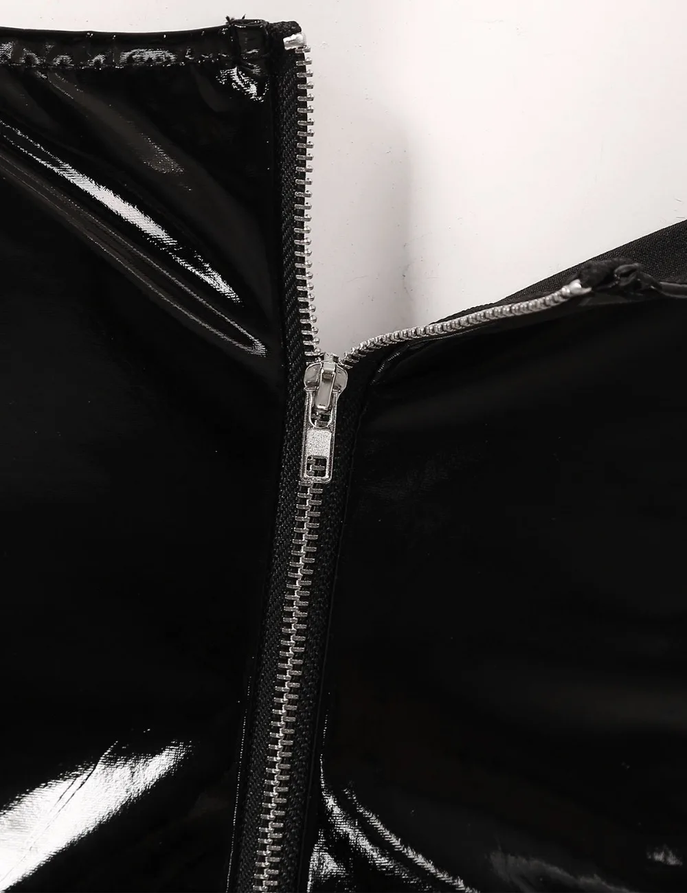 Женское платье в клетку из лакированной кожи; Мягкая и эластичная ткань; Застежка-молния сзади.