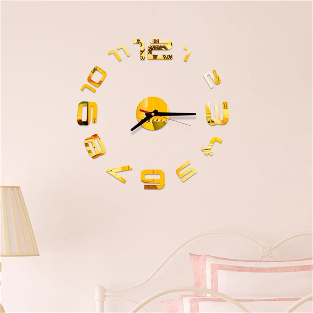 1 комплект Настенная Наклейка с зеркальным эффектом и часами (без аккумулятора)