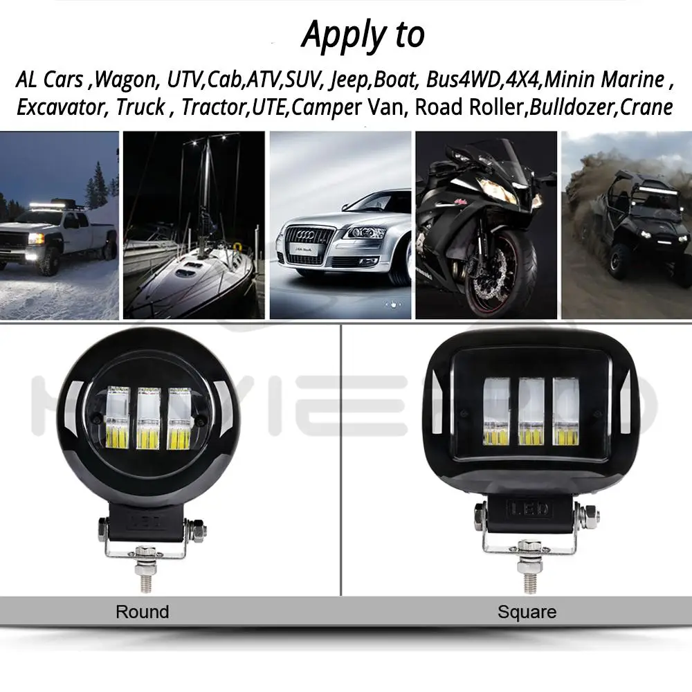 Применение: внедорожные транспортные средства, квадроциклы, грузовики, лодки, автобусы, экскаваторы, измельчители, дорожные ролики, бульдозеры, краны, горнодобывающая техника, пожарные машины, полицейские автомобили, спасательные машины, транспортные средства связи, военные командные транспортные средства, погрузчики, поезда, транспортные средства, такие как танки, используются для улучшения освещения.