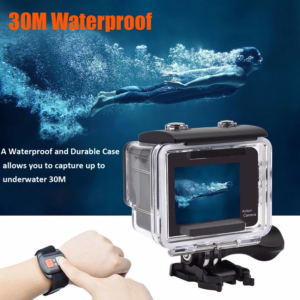 Сенсорный экран Экран экшн Камера 4K WI-FI двойной Экран 12MP возможностью погружения на глубину до 30 м Водонепроницаемый для подводной съемки на глубине до 170 градусов Спортивная камера на шлем Камера