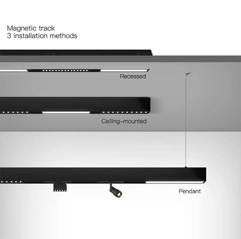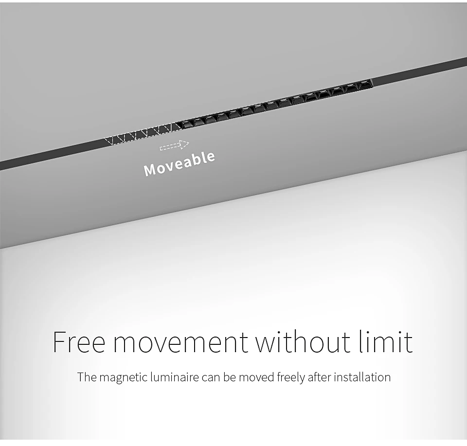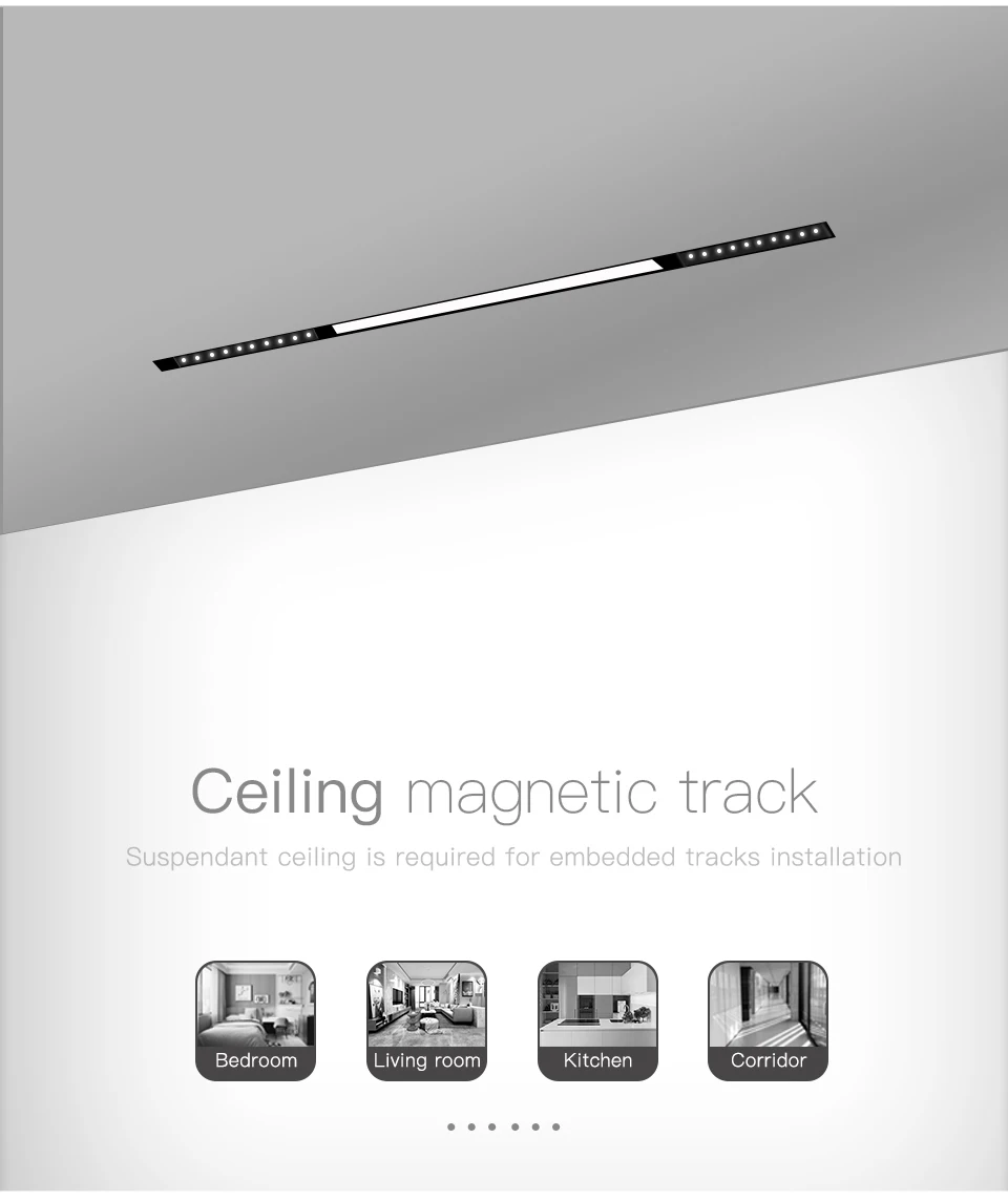 Доступные размеры: 0,5 м 1 м Установка: Утопленная, подвесная, подвесная с окружающими огнями Мощность рельса: 24 В, может касаться непосредственно. Особенность: подвижный, вы можете положить куда угодно. Свободное включение/уменьшение освещения.