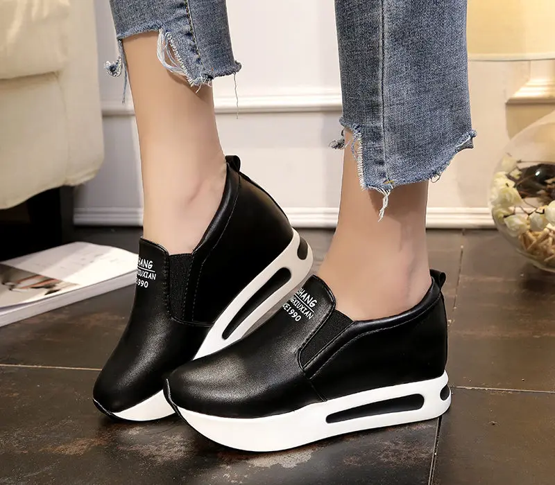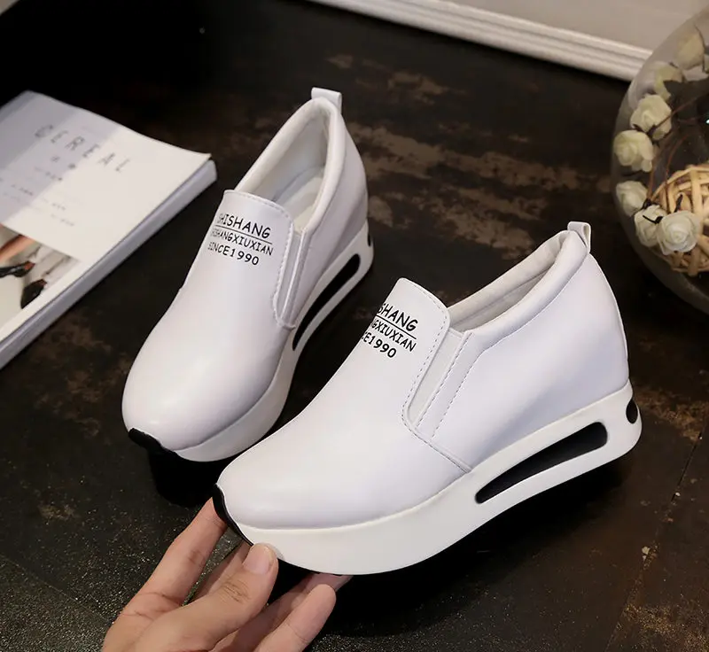 Женская Повседневная обувь; Сезон весна-осень; Женская повседневная обувь на высоком каблуке; Женская обувь на танкетке; Женские кроссовки на толстой подошве; 2019
