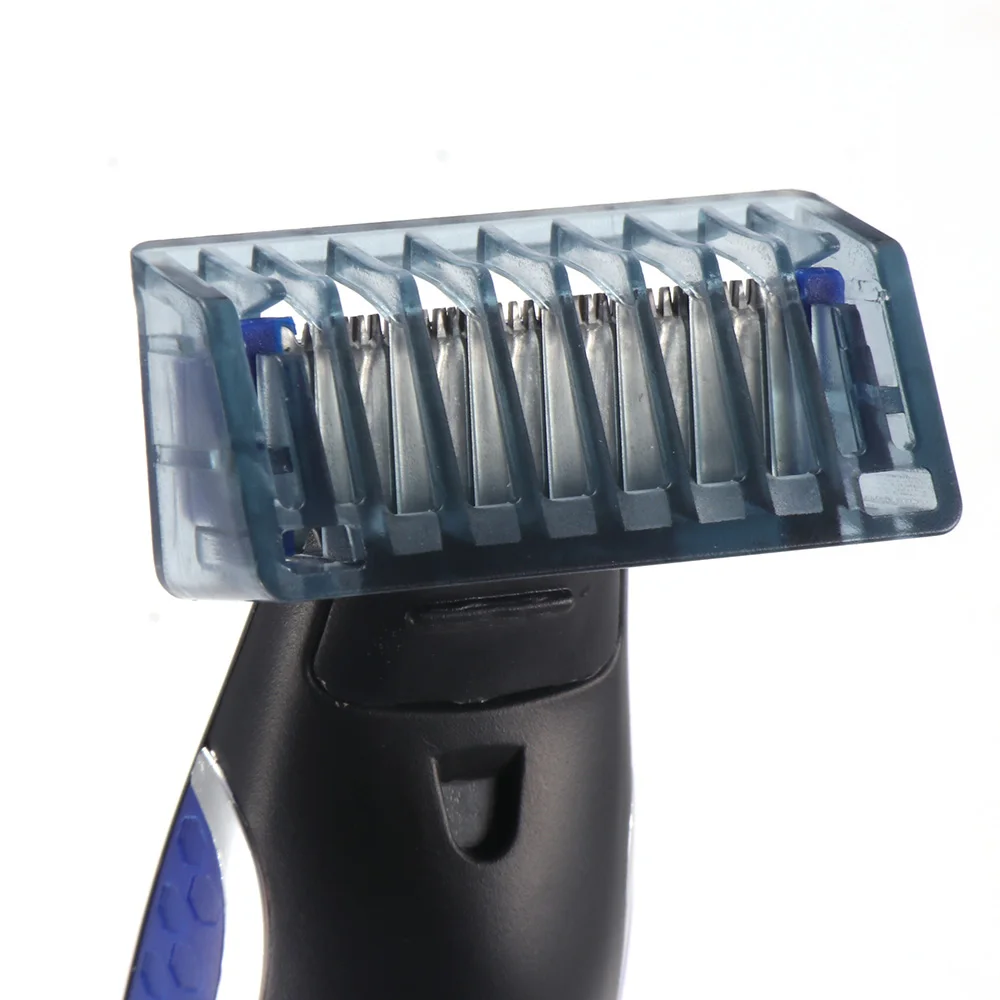 Особенности: Открытая задняя сетка, легко разряжает остаточные волосы. Без вреда для кожи с круглыми зубцами лезвия. Материал из нержавеющей стали, стойкий к коррозии, можно мыть водой. Вращающееся двустороннее лезвие для легкой регулировки угла и прилегания к контуру лица. Для обрезки окантовки. Встроенная зарядка аккумулятора 800 мАч через USB-кабель (USB-кабель в комплекте). Спецификация: Тип: Электробритва Материал: АБС-пластик + нержавеющая сталь Цвет изделия: черный Количество: 1 шт. Размер изделия: 15*3,5 см/5,9*1,4 дюйма Вес нетто: 150 г/5,3 унции Посылка 1 * электробритва 3 * Концевая расческа 1 * USB-кабель 1 щетка для чистки