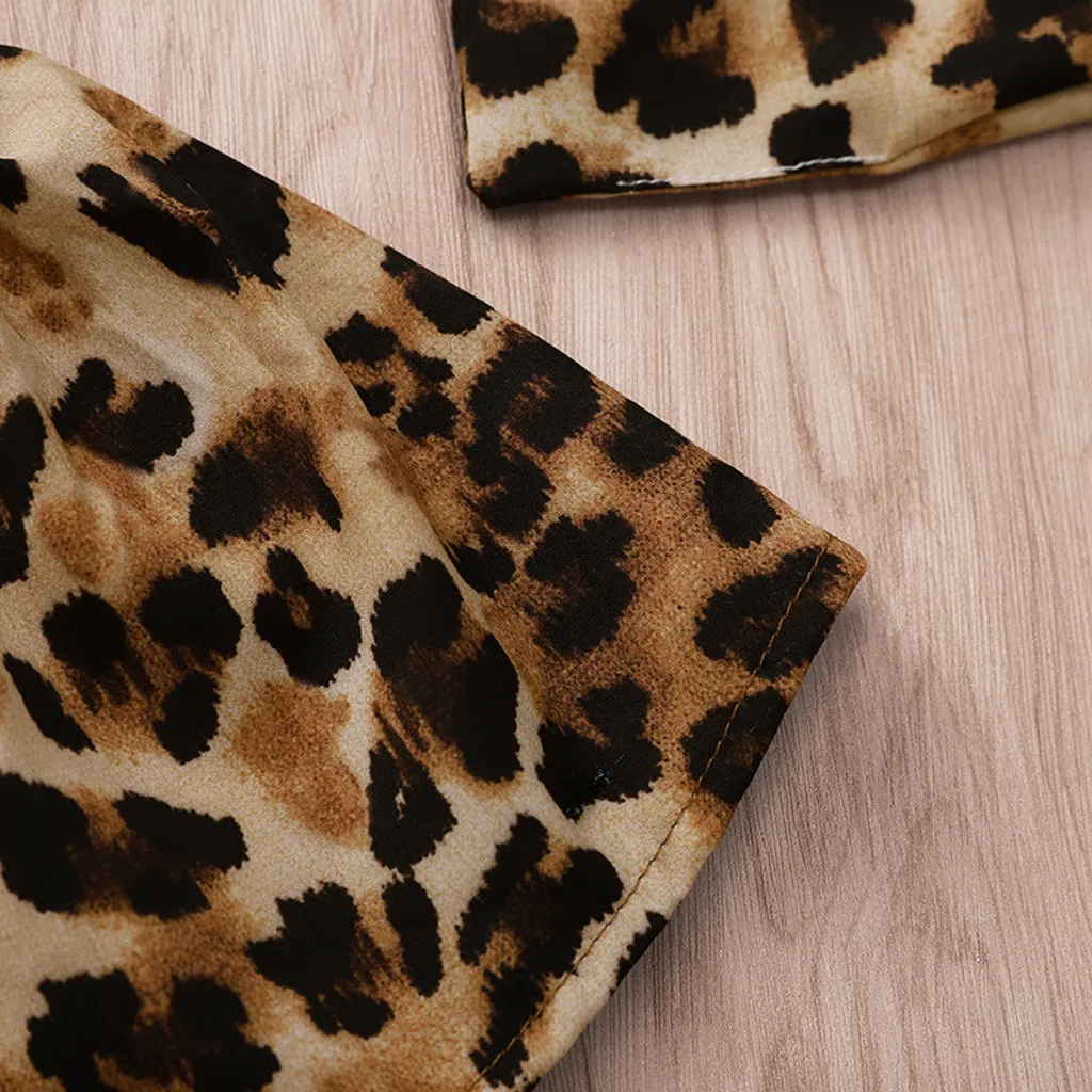 Детские топы с открытыми плечами и леопардовым принтом для маленьких девочек; кружевные шорты; одежда с повязкой на голову