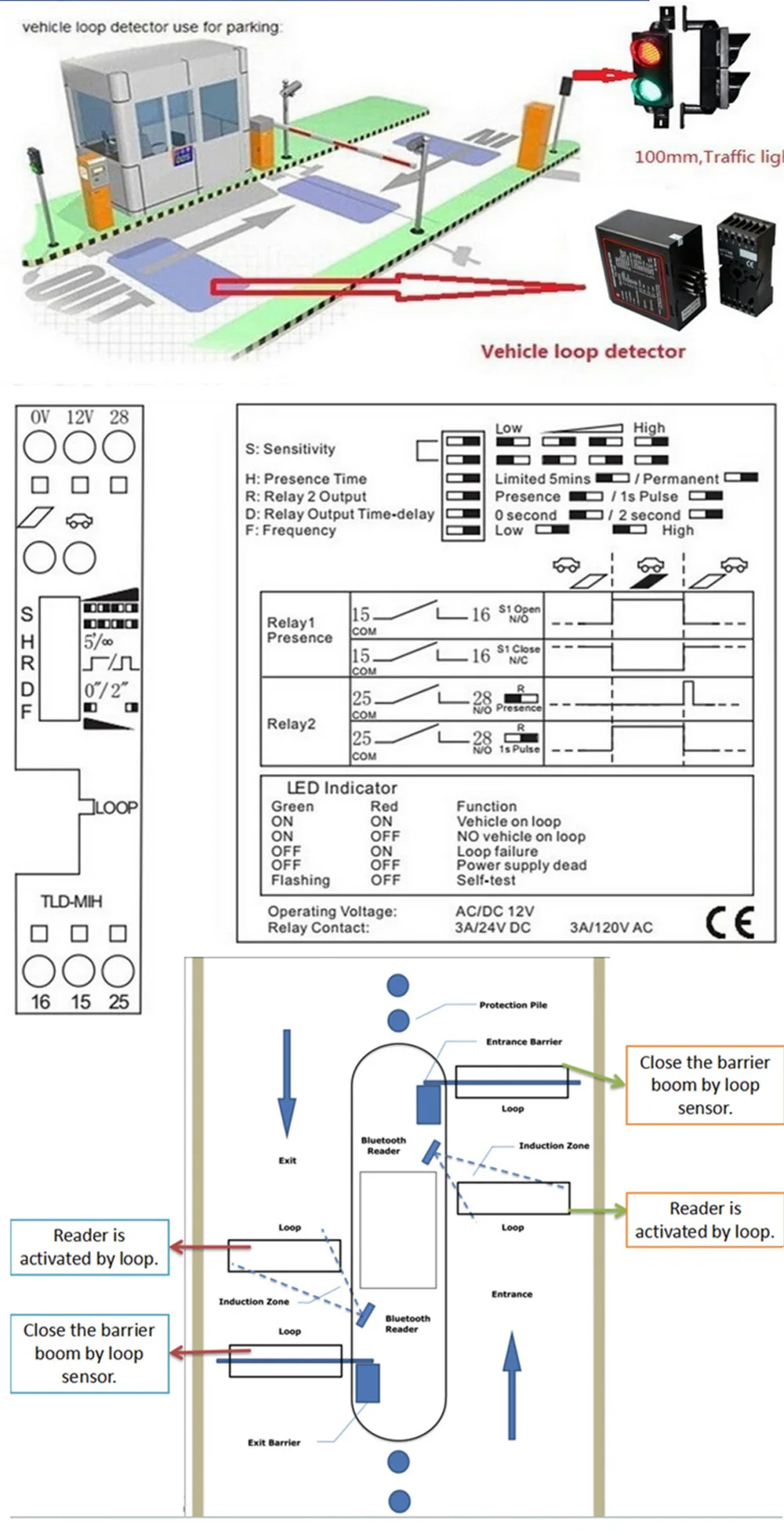 Если DIP7 находится вне площадки, то при обнаружении транспортного средства, проходящего через Индуктивный цикл, релей1 и релей2 заряжаются; Когда транспортное средство обнаруживается, покидающее петлю, relay1 и relay2 de-energized.If DIP7 "на" месте, когда транспортное средство обнаружено, проходя через петлю, Relay2 заряжен энергией; При обнаружении транспортного средства, покидающего петлю, relay2 разрядится и задерживает 500 мс, relay1 заряжен на 500 мс.