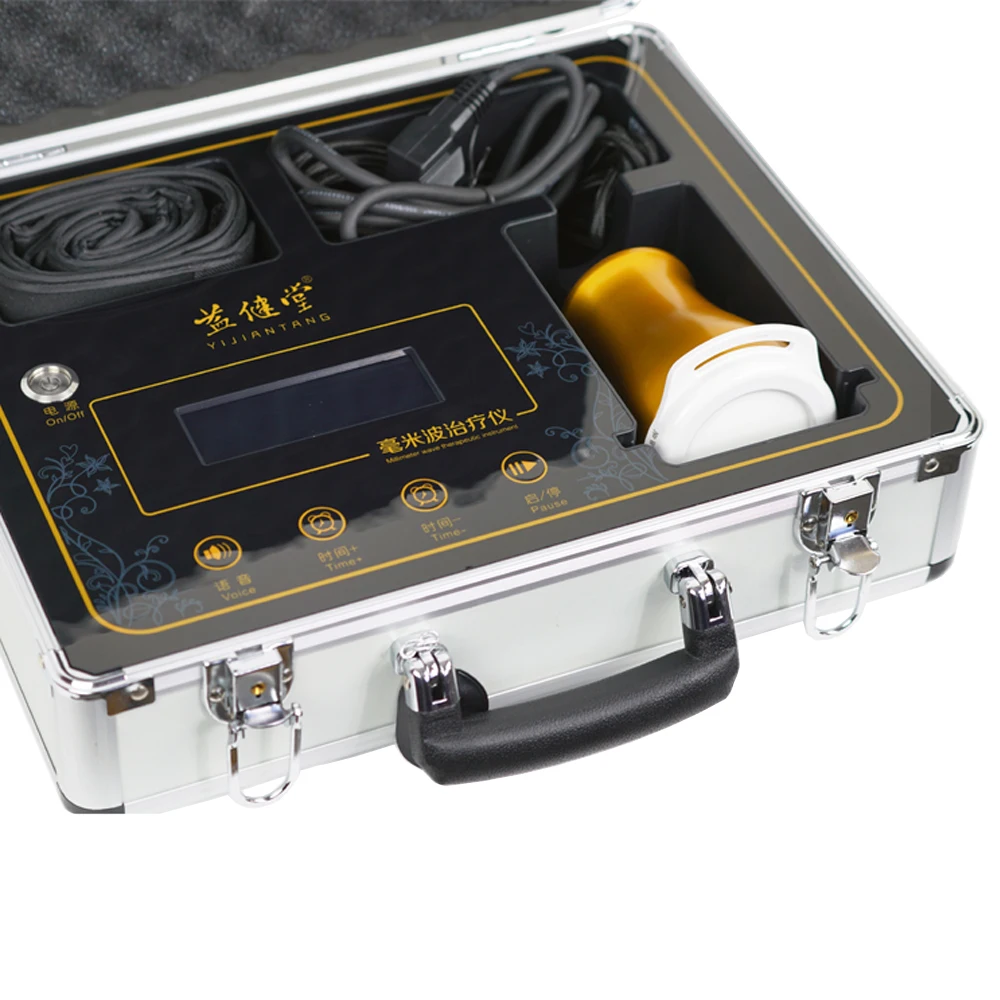 Миллиметровая волна-1-10 мм Электромагнитная волна, она равна частотному диапазону 300 ГГц-30 ГГц, это низкая мощность, короткая длина волны, высокочастотная Электромагнитная волна и находится в обмене световой волны, также называемой чрезвычайно высокочастотной электромагнитной волной. Миллиметровая Электромагнитная терапия дополнена способом энергии через меридиан, пути жидкости в организме, нейронные пути, для регулирования иммунной системы пациента.