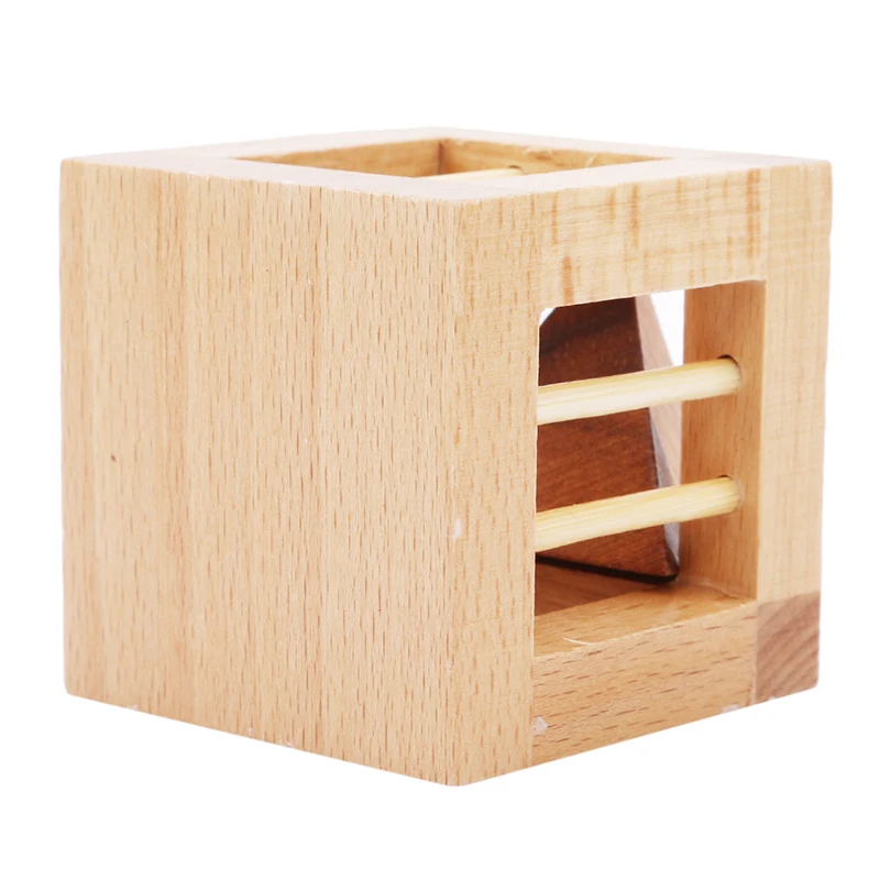 1. Деревянный блок, содержащий деревянную клетку и Тригон. Треугольный деревянный блок помещается в клетку или треугольный деревянный блок вынимается из клетки.