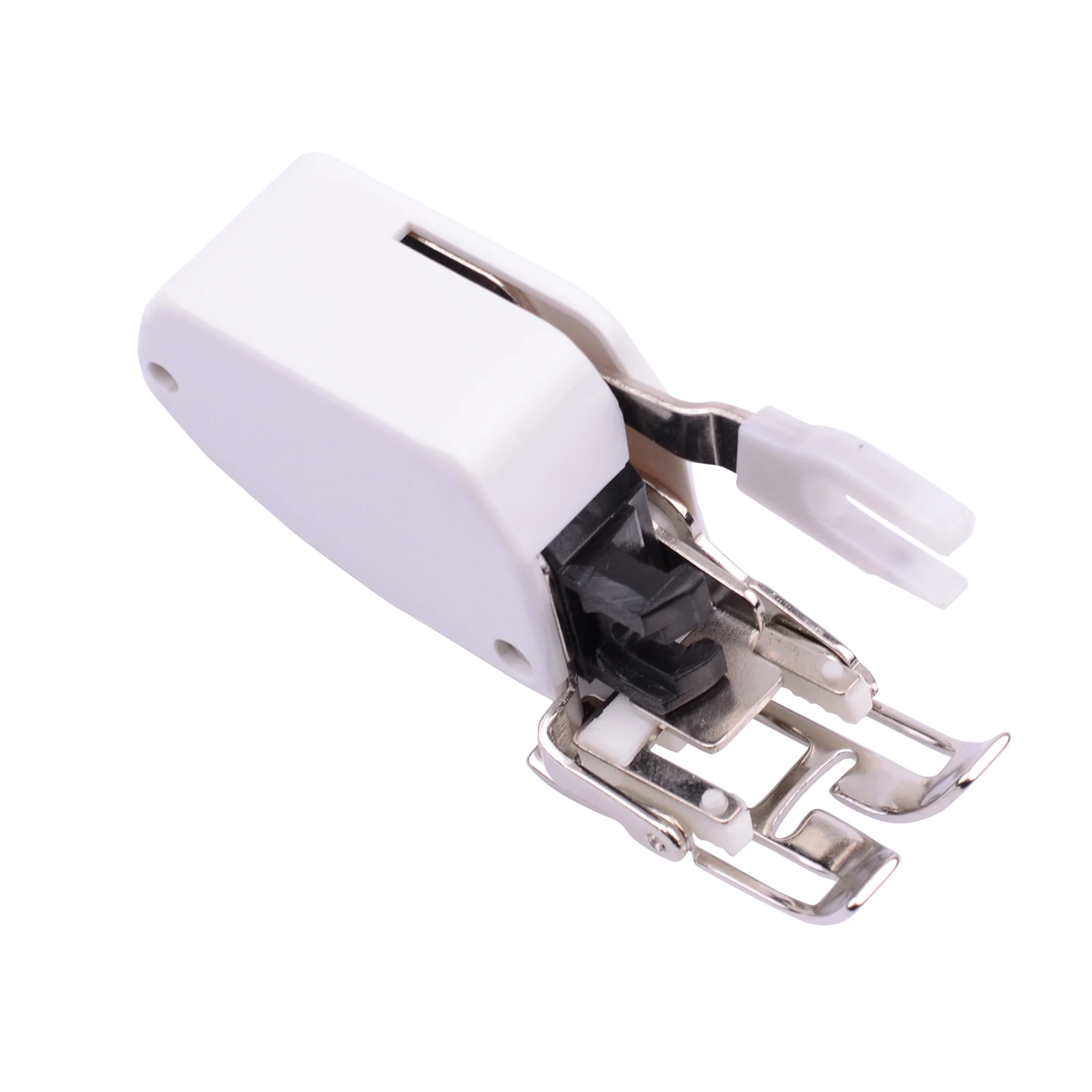 Использование: предотвращает скольжение между слоями ткани. Кормовая собака на прижимной лапе работает вместе с кормом собаки на иглообразной пластине, чтобы обеспечить гладкое Кормление и не допустить, чтобы основная ткань многослойной ткани была укорочена, когда шитье завершено. Хорошие результаты также могут быть получены при шитье поверхностных стежков. В частности, он предотвращает появление морщин в ткани при закатывании спины и закатывании. Характеристики Прижимное устройство synchro помогает питанию быть более гладкой. Ткань зажимается верхней и нижней кормовой тканью и перемещается назад синхронно, поэтому не нужно складывать ткань. Бархат, кожа или лен. Установите прижимное устройство synchro Сначала выключите выключатель питания 1. Поднимите лапу и иглу 2. Ослабьте установочный винт на лапе и снимите лапу и лапу 3. Установите прижимную ступню на прижимную ногу. Качающийся рычаг на синхронном прижимной ножке должен быть помещен на иглу фиксирующий винт и затянуть крепежный винт на прижимной ножке. * Шитье на низкой или средней скорости. Руководство по установке стежков 1. Нажмите на стежку вниз в слот позади ноги синхронизации 2. Перемещайте направляющую влево или вправо в соответствии с требуемой шириной