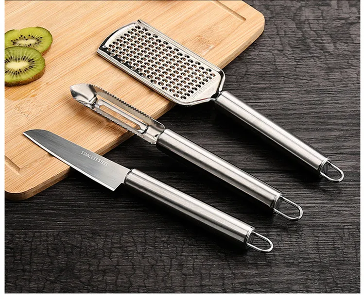 Размер продукта:Терка ---- 25*5,8 см, Овощечистка ------ 22,85*2 см, фруктовый нож ------ 22,5*2,3 см