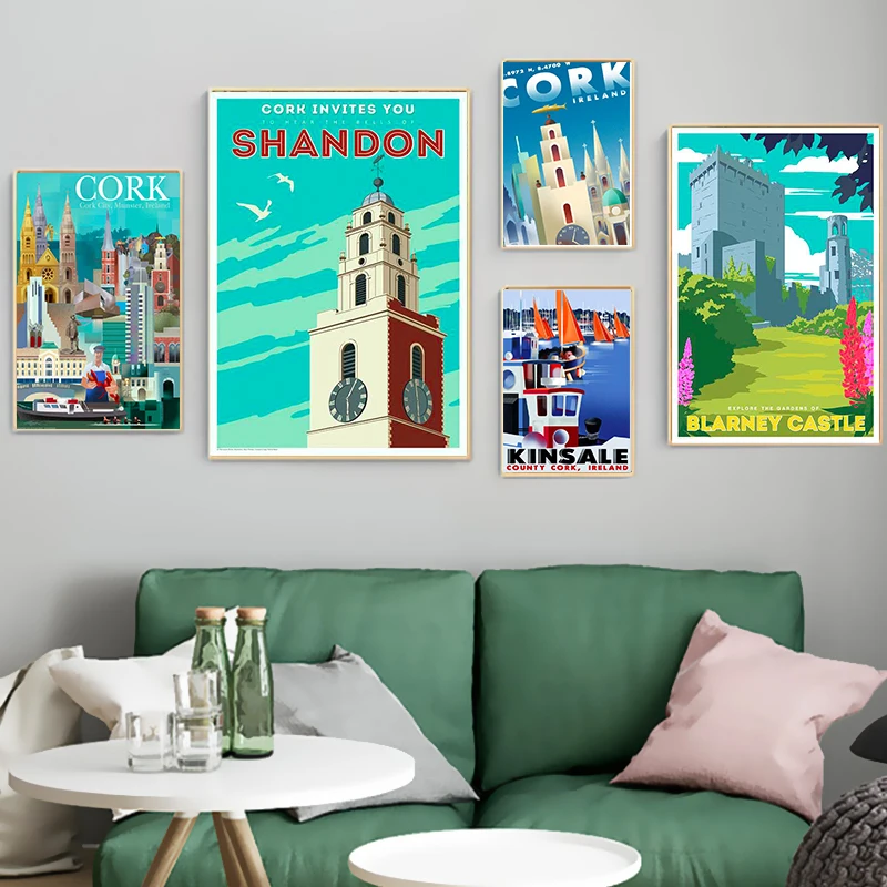 Ирландия Харбор Сити Корк винтажные туристические плакаты холст картина плакат из крафт-бумаги с покрытием стикер на стену украшение дома подарок