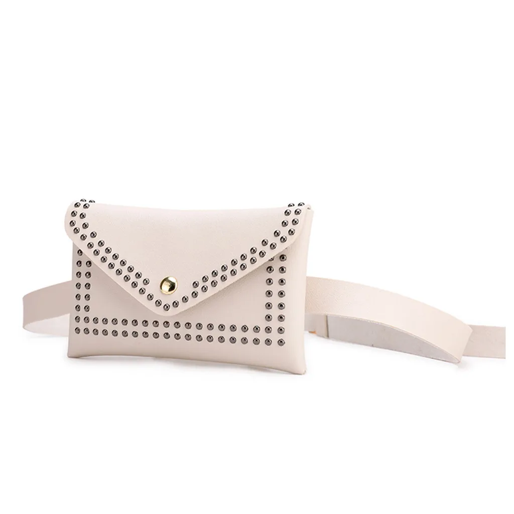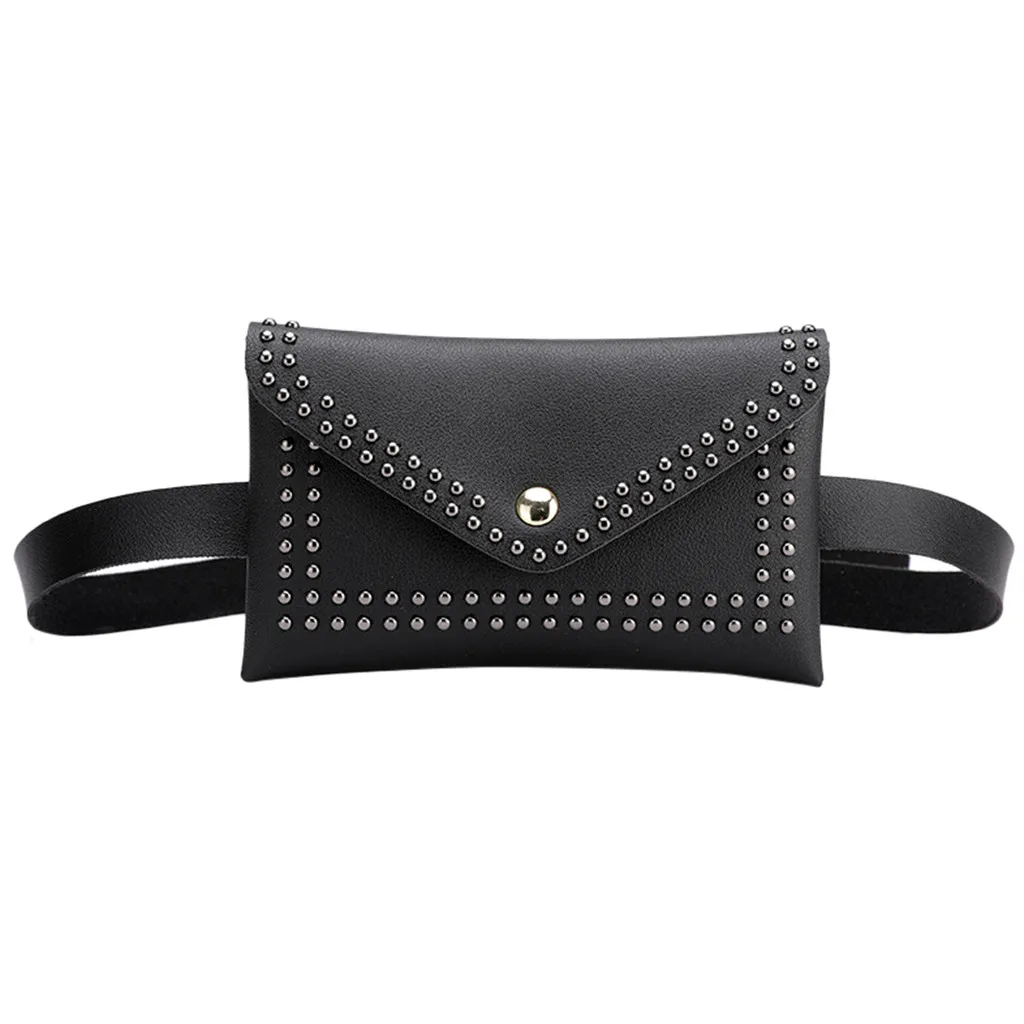 Модная женская уличная сумка-мессенджер с заклепками на застежке, однотонная сумка на груди, поясная сумка