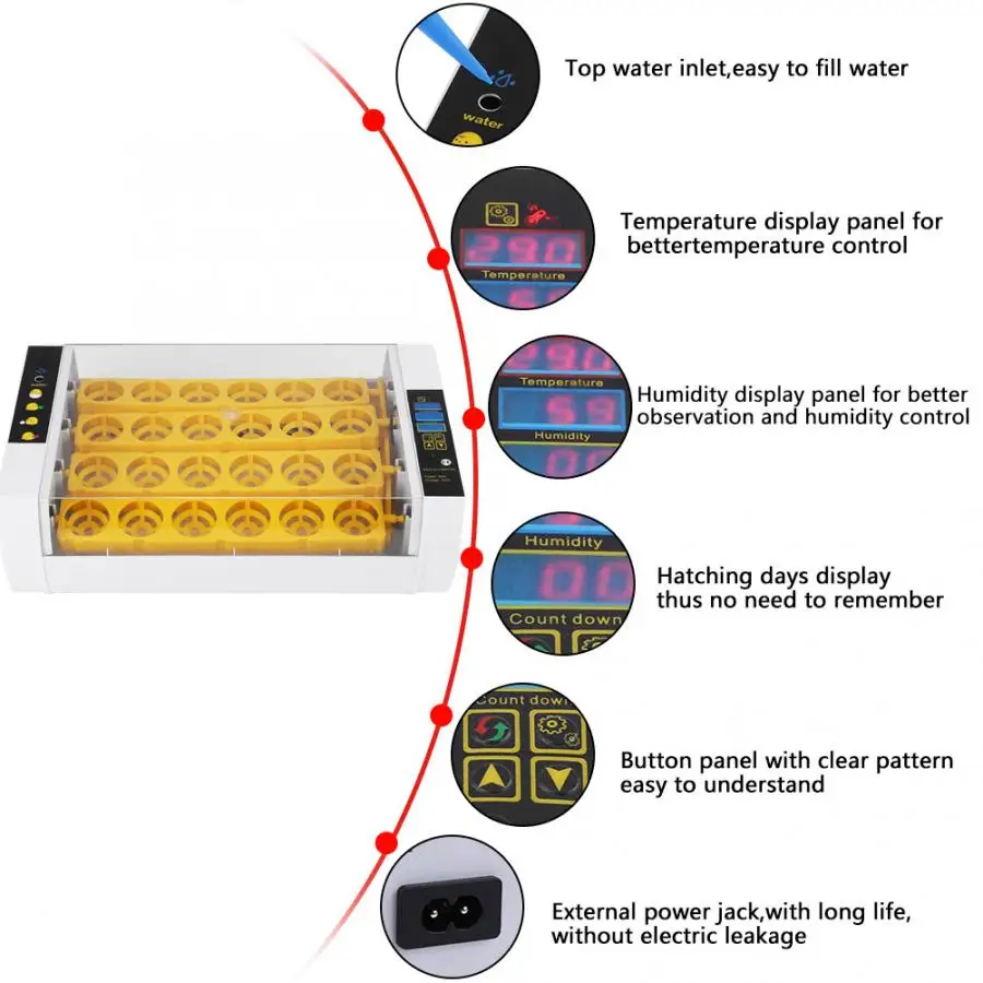 24 яйца инкубатор контроль температуры Цифровая автоматическая курочка, цыпленок Hatcher