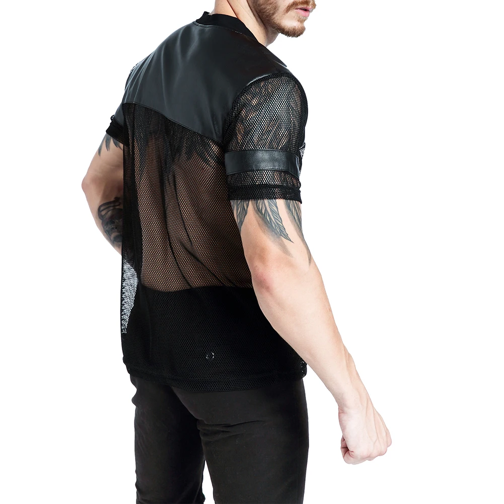 Сексуальная мужская летняя Прозрачная Футболка с v-образным вырезом и коротким рукавом из искусственной кожи