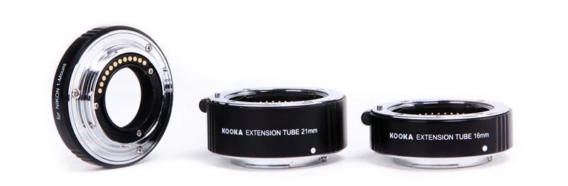 Extension tube set for Nikon (12mm,20mm,36mm) Extension tubes are designed to enable a lens to focus closer than its normal set minimum focusing distance. Getting closer has the effect of magnifying your subject (making it appear larger in the viewfinder and in your pictures). They are exceptionally useful for macro photography, enabling you to convert almost any lens into a macro lens at a fraction of the cost while maintaining its original optical quality. This Autofocus Extension Tube Set (12/20/36mm) for Nikon from KOOKA contains three tubes of different length, a 12 mm, 20 mm, and 36 mm, which can be used individually or in any combination to obtain the desired magnification.(An individual 25mm autofocus extension tube is available).