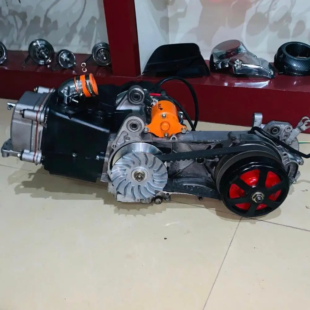 Поставляется с набором цилиндров, поршнем 62 мм, 4 клапанов головки цилиндров, коленчатого вала длинный ход + 3 мм, мощный стартер, сильный бендикс, впускной коллектор 28 мм, гоночный клатч, большой Вариатор, длинный ремень, легкий Магнето.